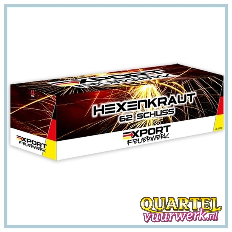 The factory description is as follows: Hexenkraut, compound consisting of three pots with a total of sixty-two shots and a fountain. Light once, enjoy four times!