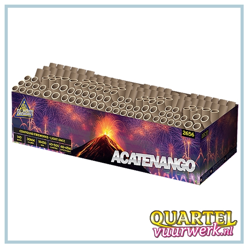 De fabrieksomschrijving luidt als volgt.: De Acatenango van Evolution Fireworks is een 140 shots flowerbed met mixed tube mm en mixed shapes. Een totale vuurwerkshow voor de echte vuurwerkliefhebber!