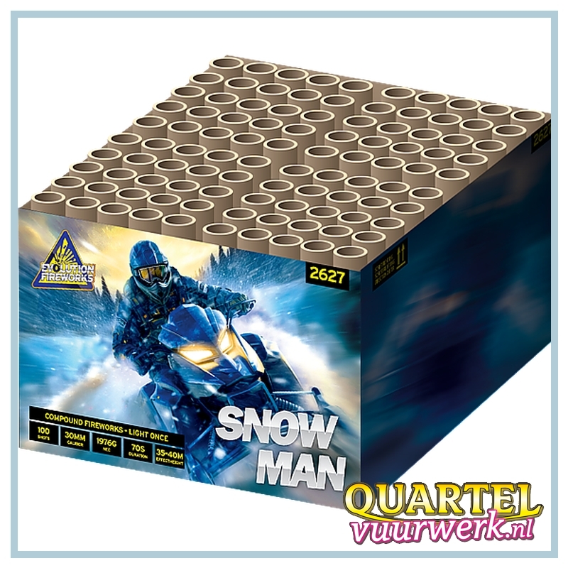 De echte kenner legt de link misschien al door de naam, want de Snowman is de opvolger van de Snowstorm. Op verzoek van verschillende liefhebbers heeft Evolution Fireworks de zeer geliefde Snowstorm effecten nieuw leven ingeblazen in een maximaal uitgevoerde 100 shots 30mm compound. Dit is gewoon puur genieten van een ijskoud spektakel.