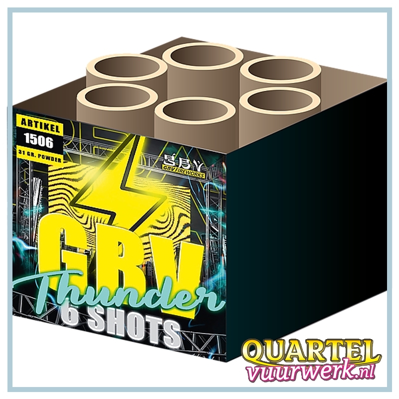 BAM! De rammer voor je oudejaarsavond; de GBV Thunder. Kleine cake met 6 schoten welke als salvo allemaal tegelijkertijd de lucht in worden gejaagd. De topper om rammend het nieuwe jaar in te luiden!