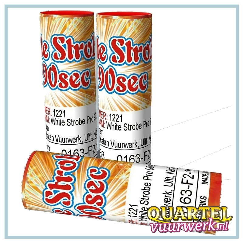 The factory description is as follows: 3 extra large stroboscopes that produce enormous bright white flashes of light. These light up the entire street for 90 seconds. These have been used for years by pyrotechnicians at professional fireworks shows. Simply for sale for young and old.