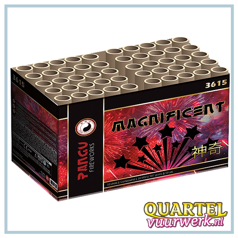 Deze compound is maar met een woord te omschrijven; Magnificent! Met 50 schoten in de maximale 30mm tubesize krult de compound zijn schoten sierlijke de lucht in, om vervolgens de meeste schitterende glitterpalms met een felgekleurde parel te tonen. Op en top siervuurwerk.