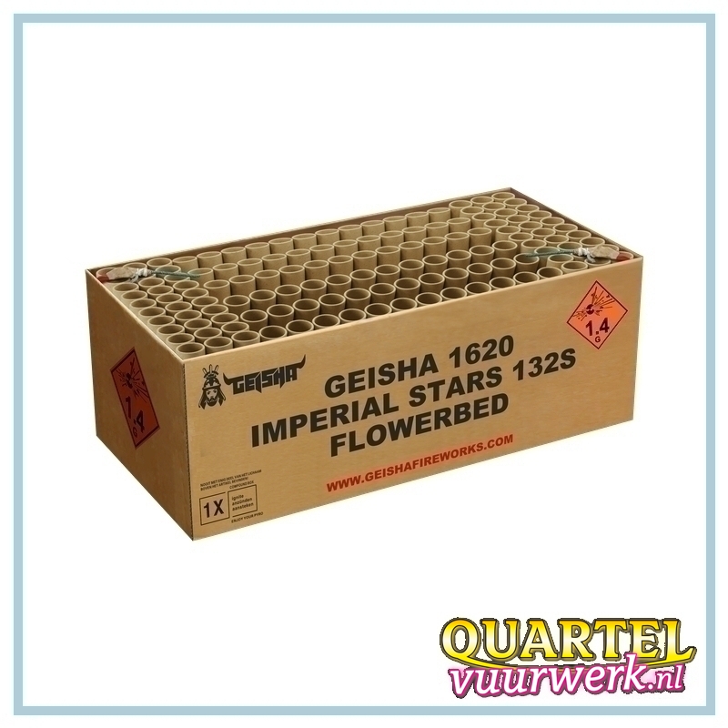 De MANIA Imperial stars flowerbed 132.s compound heeft een klasse van CAT 2 en is 1,4 G met een brandtijd van 50 seconden