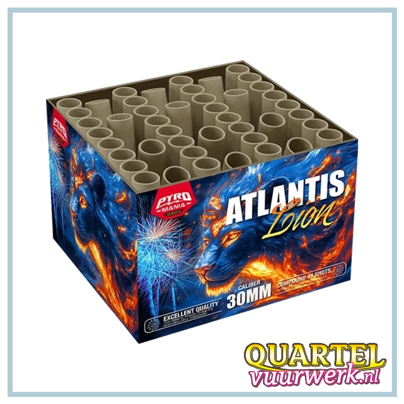 De fabrieksomschrijving luidt als volgt.: De ATLANTIS LION brult in de lucht! Deze 1.2″ lion is on fire: 44 shots, 30 mm kaliber en meerdere schietrichtingen zorgen voor een show met power en variatie.