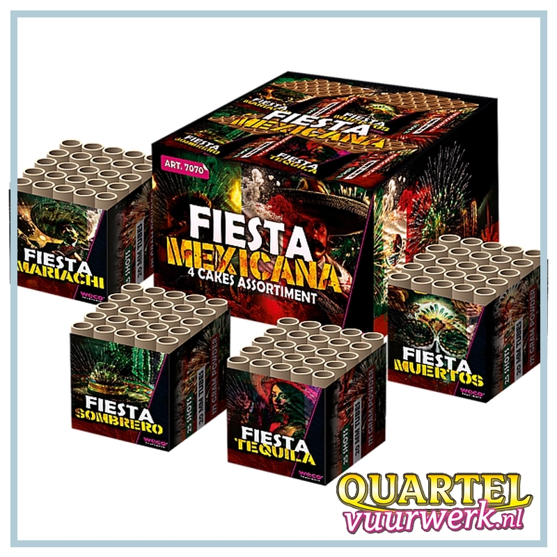 Fiesta Mexicana, vuurwerkpakket bestaande uit vier siercakes met ieder 25 schoten en een tubesize van 20mm.